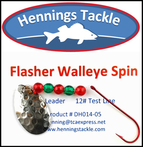 The Flasher Walleye Spin uses a large blade and single straight hook. It puts out a big sound and vibration. It is designed to fish fast. You will need to slow it down as you go deeper. Tip with 1/2 a crawler, minnow, or leech.