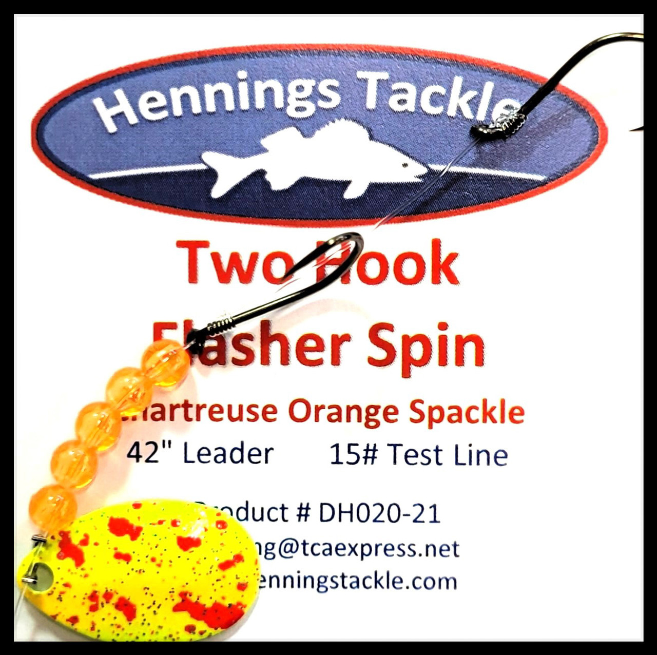 Click the button below to add the Two Hook Flasher Spin - Chartreuse Orange Spackle to your wish list.
